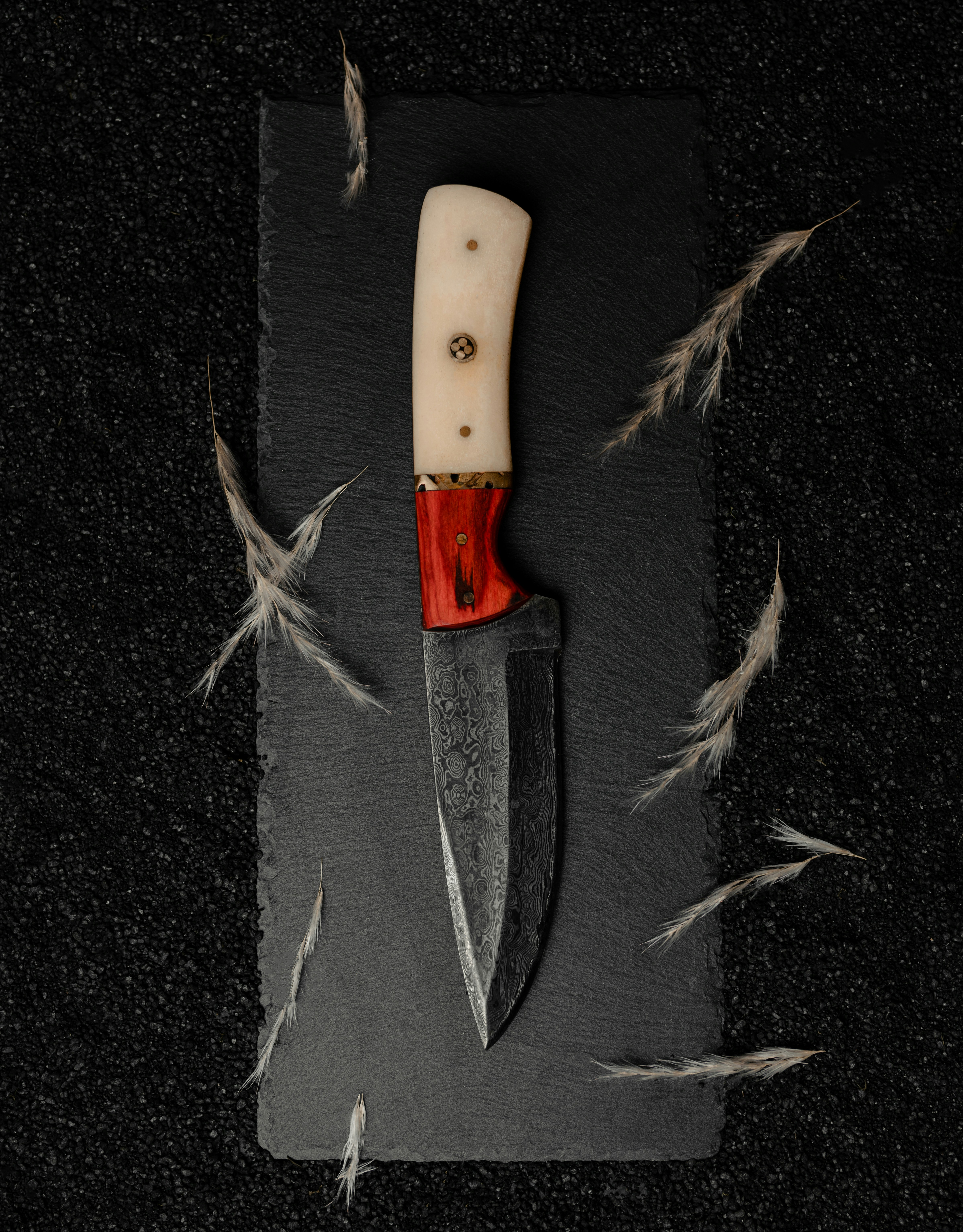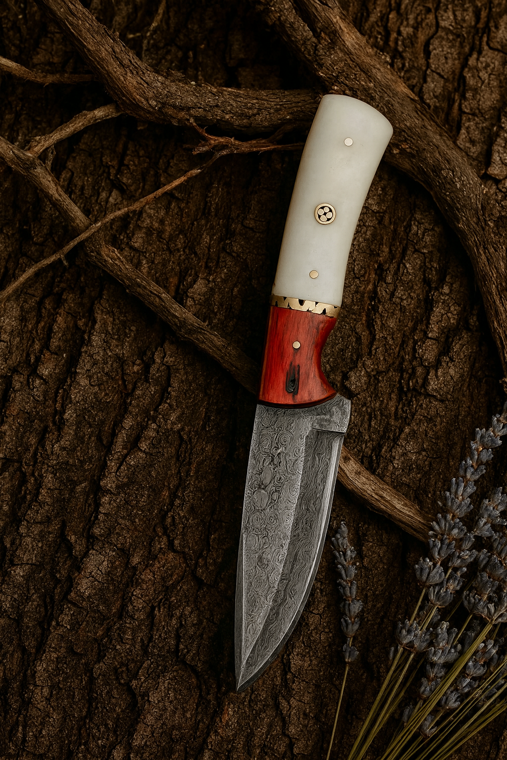 Dieser Messerrohling aus hochwertigem Damaststahl wurde nach den überlieferten Schmiedetechniken der alten Inder gefertigt – ein Verfahren, das für seine außergewöhnliche Haltbarkeit, Schneidfreude und charakteristische Maserung bekannt ist. Die kunstvoll geschichtete Stahlstruktur verleiht jeder Klinge ein individuelles, lebendiges Muster und macht jedes Stück zu einem Unikat.